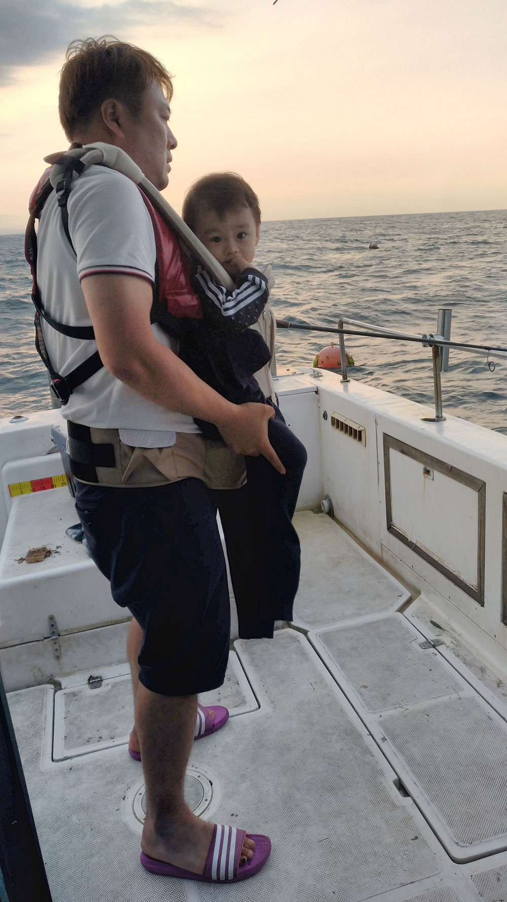 파도가 있는데도 아기띠를 각각 두룬후 각자의 가자미체험을