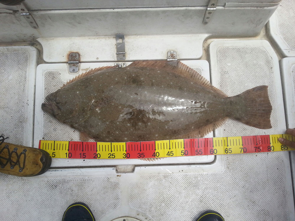 역시나 강릉에서 오신 타짜님이 82센티 대물광어를 끄집어냈습니다