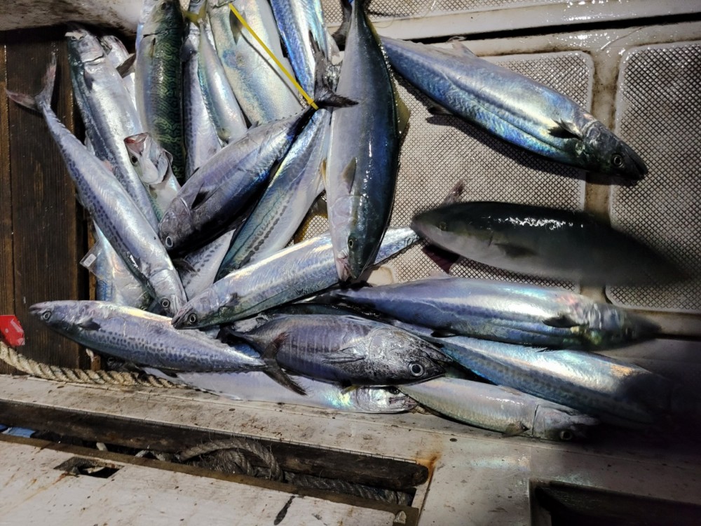 5명 모시고 방어3 참치2 삼치 40마리 잡고 왔습니다..