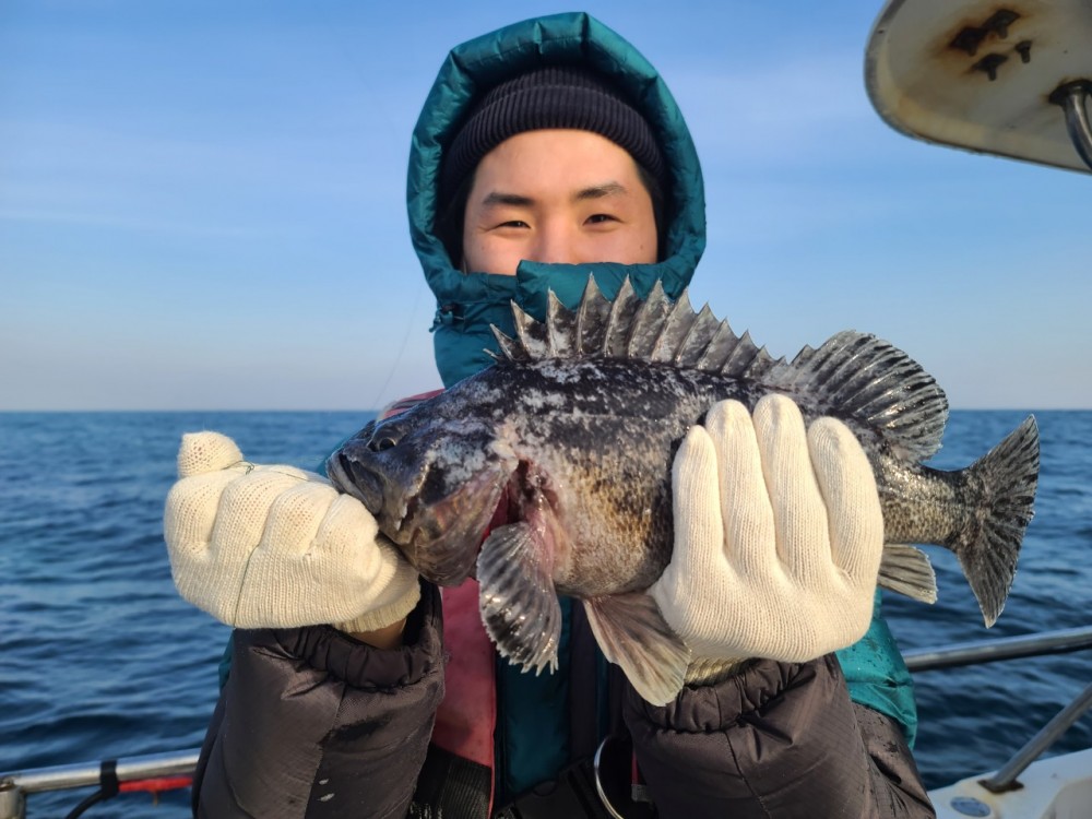 강릉피싱호는 5짜싸이즈 우럭을 스타트로 열기 볼락 돌삼치 참우럭등이나왔습니다 바람이 잠시 소강상태이면 쭈욱나왔다가 바람이 터지면 배를 잡아도 잡히질 않을만큼 바람이 불었습니다